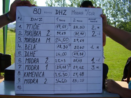 Hasičské preteky Modrá nad Cirochou 11.7.2010 - 1.miesto